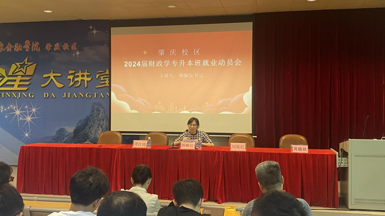 为推动学习贯彻习近平新时代中国特色社会主义思想主题教育走深走实,贯彻落实党中央、国务院关于高校毕业生就业工作的决策部署,提升人才培养质量和员工就业质量,5月22日,公司党总支书记颜佩仪率公司领导班子成员赴肇庆校区为2022级财政学专升本班级开展专业指导和就业动员会议。会议由肇庆校区党总支书记曾英杰主持。