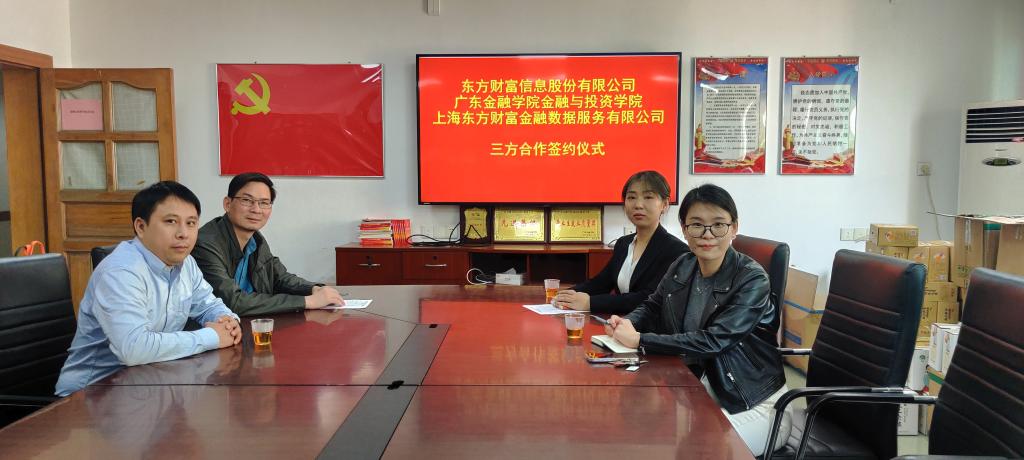2023年2月24日下午,东方财富信息股份有限公司和上海东方财富金融数据服务有限公司代表人士盖雯雯访问太阳成集团tyc,受到太阳成集团tyc副经理李日新、党总支副书记黄镜秋、投资系主任胡妍热情接待。