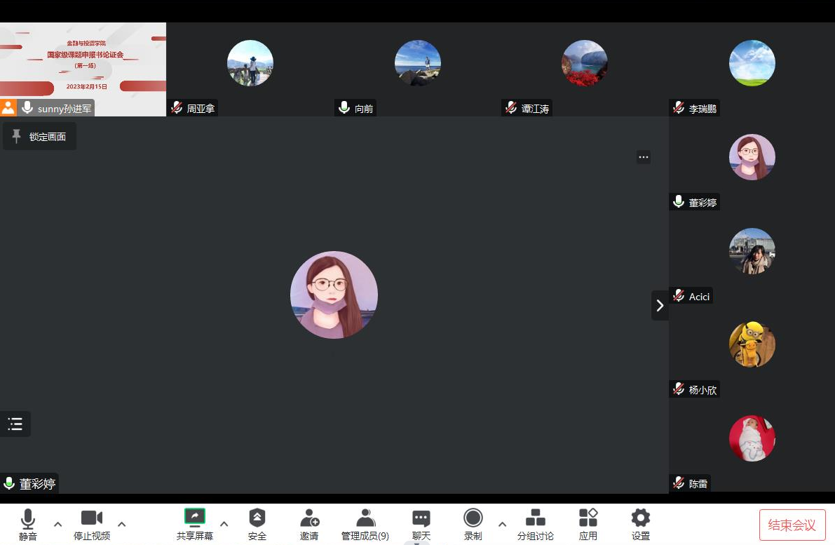 为提高课题申报书的撰写质量,太阳成集团tyc组织国家级课题的申报教师、以线上腾讯会议的形式举办了第一场国家级课题(2023年)申报书论证会(2023年2月15日晚上19:40-22:40)。经理项后军教授、副经理孙进军副教授,特邀论证人陈雷博士、李瑞鹏博士,以及已提交国家级课题申报书的教师参加了本次论证会。