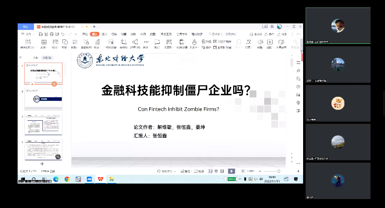 张恒鑫博士分享了题为《金融科技能抑制僵尸企业吗?》的最新研究成果。在深化供给侧结构性改革的背景下,治理僵尸企业是化解过剩产能,驱动经济高质量发展的关键任务。那么,金融科技支持金融服务体系升级,能否发挥对僵尸企业的抑制作用?文章实证检验发现金融科技能够抑制僵尸企业,并且这种抑制作用对国有僵尸企业和银行竞争激烈地区僵尸企业更显著。研究表明金融科技抑制僵尸企业具有明显的信贷溢出效应,可以有效缓解正常企业融资约束。张震副教授随后进行了精彩点评。