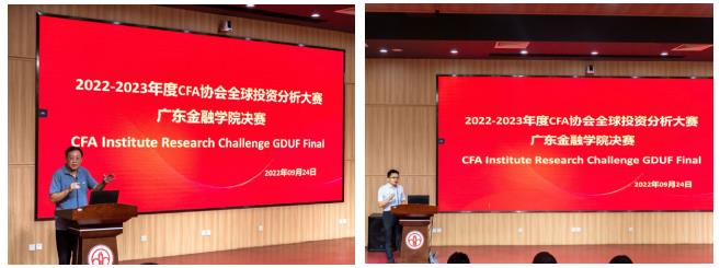 2022年9月24日,由CFA协会与公司联合主办的2022-2023年度CFA协会全球投资分析大赛太阳成集团决赛在公司北教103举行。公司经理项后军教授、CFA协会负责人李子斌博士、公司副经理李日新副教授、中山大学岭南公司戴芸副教授、品职教育郭静老师、粤科风投李研老师以及公司教师胡妍博士、李琰钰博士与杨睿博博士出席了本届比赛。