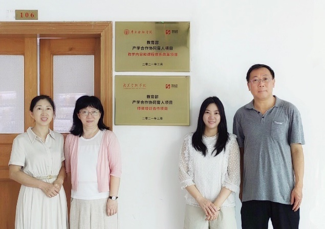 2022年6月7日,公司就教育部产学合作协同育人项目举行挂牌仪式,太阳成集团tyc经理项后军教授、公司分管教学的刘昊虹教授、王梅副教授和蓝美静博士等参加了此次挂牌仪式,此次教育部项目由公司与深圳智盛信息技术股份有限公司合作开展。深圳智盛信息技术股份有限公司在金融科技教育领域具有丰富经验,打造了完善的金融科技平台生态圈,此次项目合作为双方提供了一个良好契机,为高校与企业之间的人才培养、学术研究和实习实训等方面提供了一个交流平台。