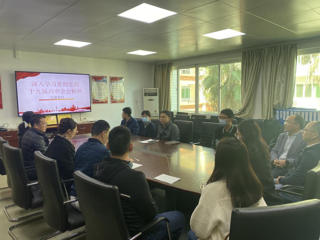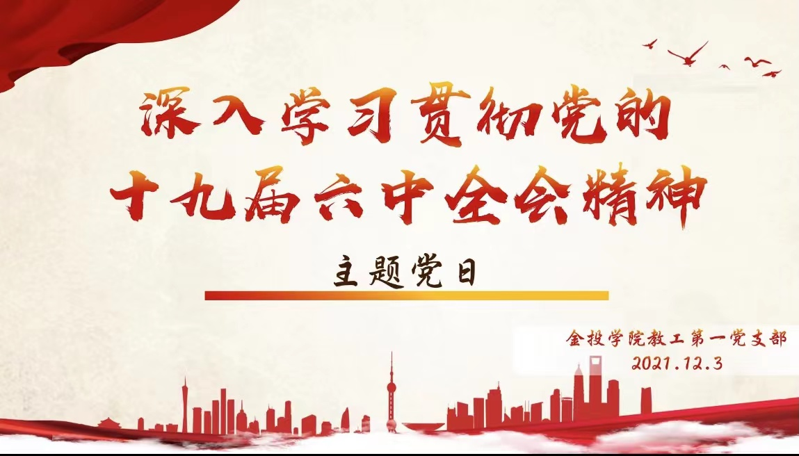 2021年11月8日至11日,中国共产党第十九届中央委员会第六次全体会议胜利举行!2021年12月3日金投公司教工第一党支部在公司会议室召开主题党日活动:党员通过学习党的十九届六中全会精神,结合自身工作性质,畅谈学习心得体会。本次会议由支部书记王颖老师主持,部分党员参加会议并积极发言。