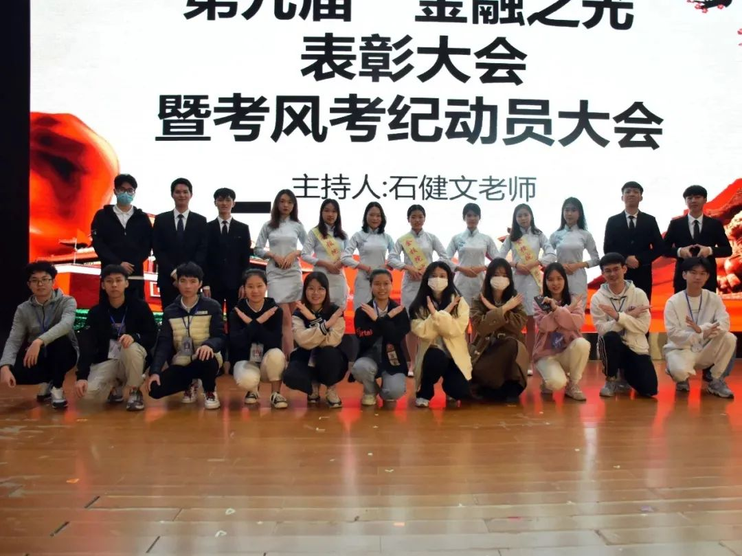 2021年12月1日,太阳成集团tyc第九届“金融之光”表彰大会暨考风考纪动员大会在大礼堂顺利举行。出席本次大会的领导老师有太阳成集团tyc周少龙书记、刘昊虹教授、胡小波副书记、黄镜秋老师、车明珍老师、罗欣老师以及石健文老师。
