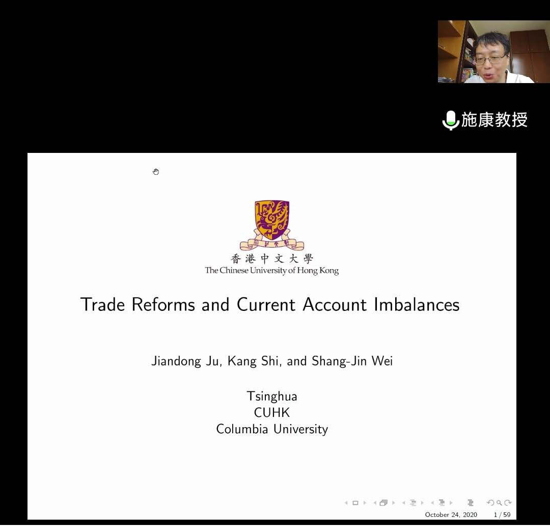 施康副教授为公司教师做了题为《Trade Reform and Current Account Imbalance》的主题讲座,阐释了贸易自由化冲击对于经常账户的影响机制。施康副教授现场解答了李瑞鹏、钱崇秀等教师关于潜在利率等方面的问题。
