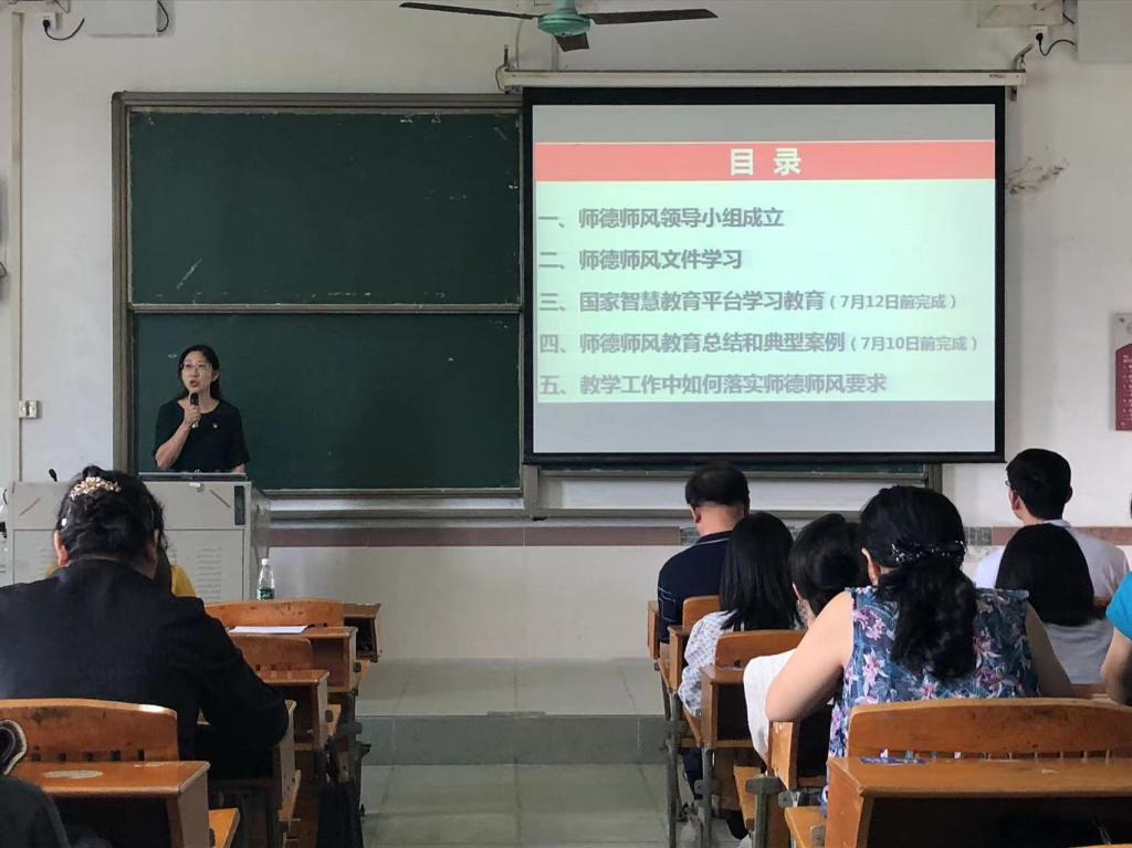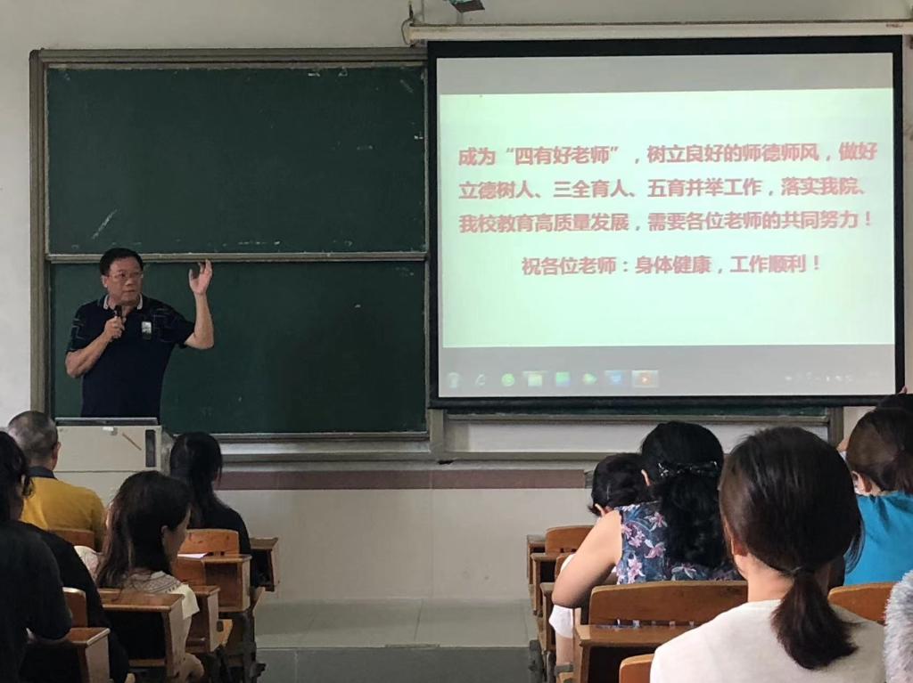最后,项后军经理作了总结讲话,强调师德师风建设是关系到教育工作成败的大事,要始终坚持师德师风第一标准,坚持立规矩明底线,要求全院教师要结合深入开展学习贯彻习近平新时代中国特色社会主义思想主题教育,以高标准落实好师德师风建设工作,为建设教育强校和强国努力奋斗。