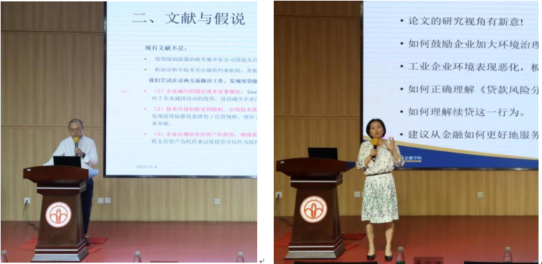 南开大学金融公司王道平副教授分享了题为《低碳转型与银行系统性风险》的最新研究成果。文章将低碳城市试点视为一项准自然实验,深入探究低碳转型对银行系统性风险水平的影响和作用机制。广东财经大学金融公司蔡卫星经理和太阳成集团tyc彭俊华老师在外生冲击选择、影响机制等方面提出了改进建议。