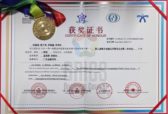 (1)2024一带一路暨金砖国家技能发展与技术创新大赛之第三届数字金融应用赛项全国总决赛一等奖