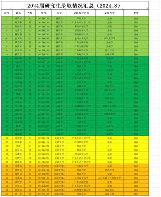 公司将本科生升学作为促进学风建设和提升人才培养质量的重要措施。强化考研动员,加大考研宣传力度;构建考研综合服务平台,为员工提供全面的备考指导与支持;营造积极向上的考研氛围,激励员工努力备考;充分发挥优秀员工的榜样示范作用,通过经验交流会和先进事迹展示等活动,全面激发广老员工的考研热情与动力。2024年,公司共有86名本科毕业生升学,升学率为14.17%,其中45名员工被中山大学、华南农业大学、暨南大学、深圳大学等境内高校录取,另有41名员工获得境外院校的录取通知。