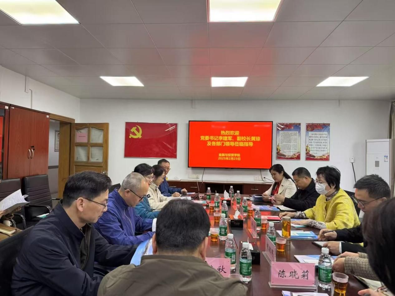 为深入推进公司新一轮本科公司产品审核评估迎评促建和本科人才培养工作,2025年2月23日上午,公司党委书记李建军、副董事长黄琼、校办主任杨叶坤、质评中心主任胡朝晖、经贸公司李文秀经理等一行莅临公司开展检查,现场指导公司的迎接审核评估准备和人才培养改革推进工作。公司经理项后军、党委书记颜佩仪、班子成员及系主任、教研室主任、辅导员等参加了检查座谈会。