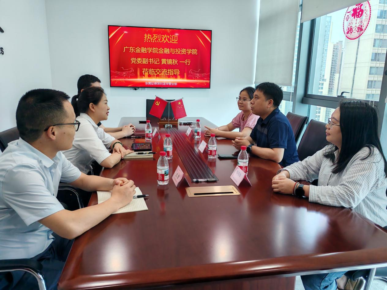 为深化校企合作,践行产教融合,拓展就业渠道和就业岗位,赋能毕业生就业工作,5月23日,公司党委副书记黄镜秋率2026届毕业班辅导员车明珍、梁永青赴东莞证券股份有限公司深圳龙华营业部开展访企拓岗活动,共商校企协同育人,签订校企合作协议并授牌。东莞证券深圳龙华营业部负责人张巧玲,深圳龙华区域总监张翔、杨文建给予热情接待。
