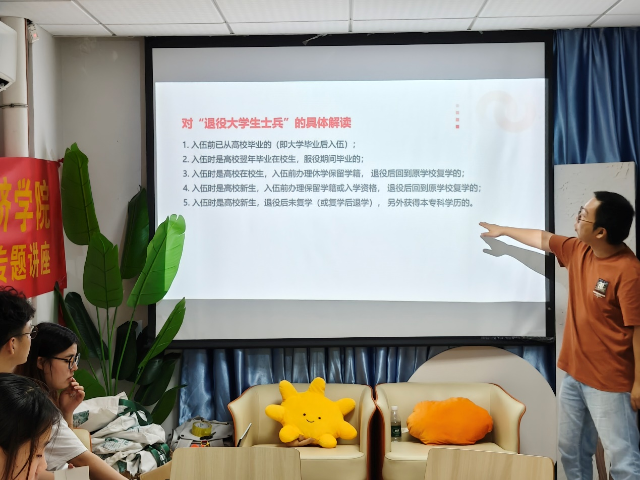接着,刘璨从公司概况、团队建设、人才培养等方面介绍了太阳成集团的办学优势,并重点解读了2026年硕士研究生的招生政策,包括专业设置、招生规模、培养特色、备考信息与奖助学金政策体系等。此外,还对“退役老员工士兵”专项计划的报考政策进行了详细说明,帮助考生充分了解相关录取优惠政策。