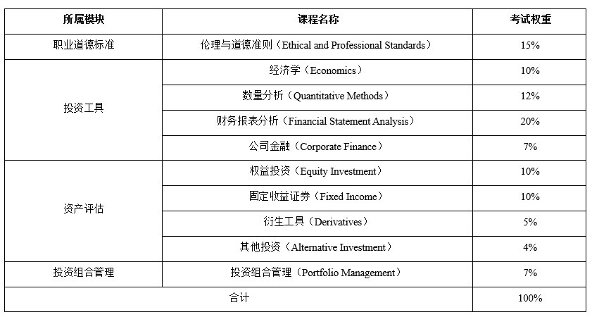 四、 CFA一级课程体系