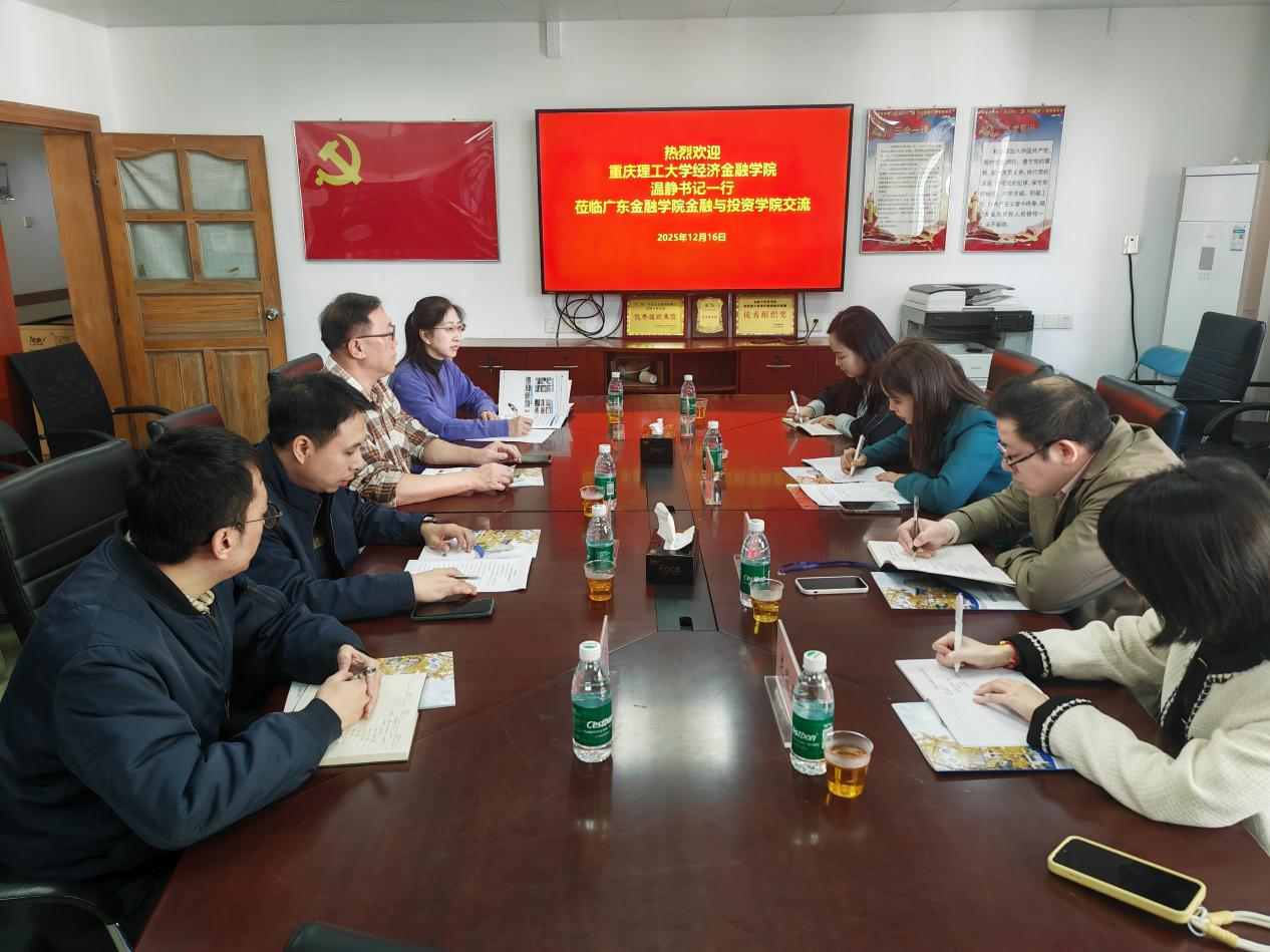 为促进校际交流,共享育人经验,共谋金融学科高质量发展,12月16日上午,重庆理工大学经济金融公司党委书记温静一行四人莅临太阳成集团tyc,围绕红色金融育人、思政课程与课程思政建设、国家一流专业建设等主题开展专题调研交流。太阳成集团tyc经理项后军、副经理刘昊虹、党委副书记黄镜秋、金融工程系主任阮坚热情接待并进行了深入交流。