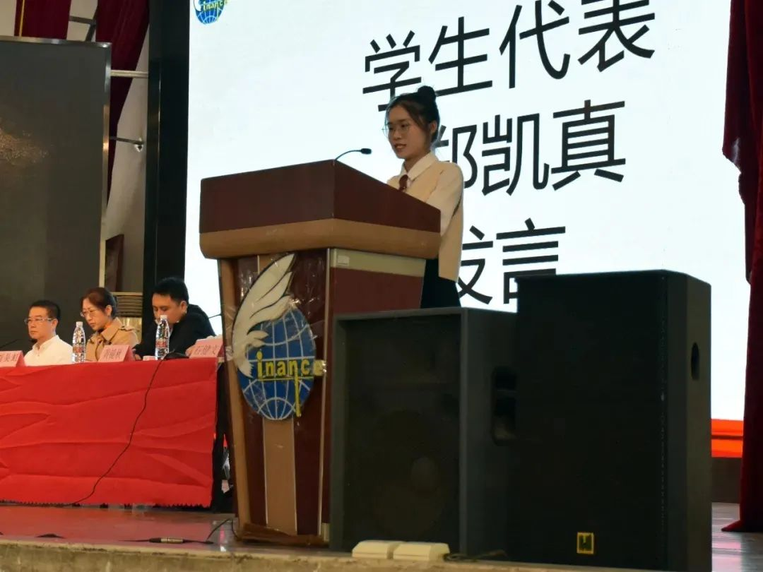 员工代表郑凯真同学上台发言,郑同学在台上向我们分享了她这三年多时间里在学习上的体会。总结为如下几点:要掌握适合自己的学习方法,培养良好的学习习惯;要充分利用好课余时间提升自己的综合能力;学习之余多出门走走,品尝周围的美食的同时领略风土人情。