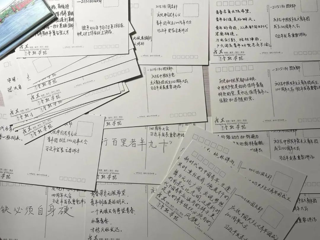 每一份政府报告都凝聚了无数思想精华,是青年的精神食粮。我们动员班级全体同学在小纸条上书写习近平总书记关于建团100周年的讲话、十九大及十九届历次全会热点话题内容等报告金句,并将小卡纸随机派发送给校园内的同学们,让同学们进一步了解党的方针政策,永远跟党走。