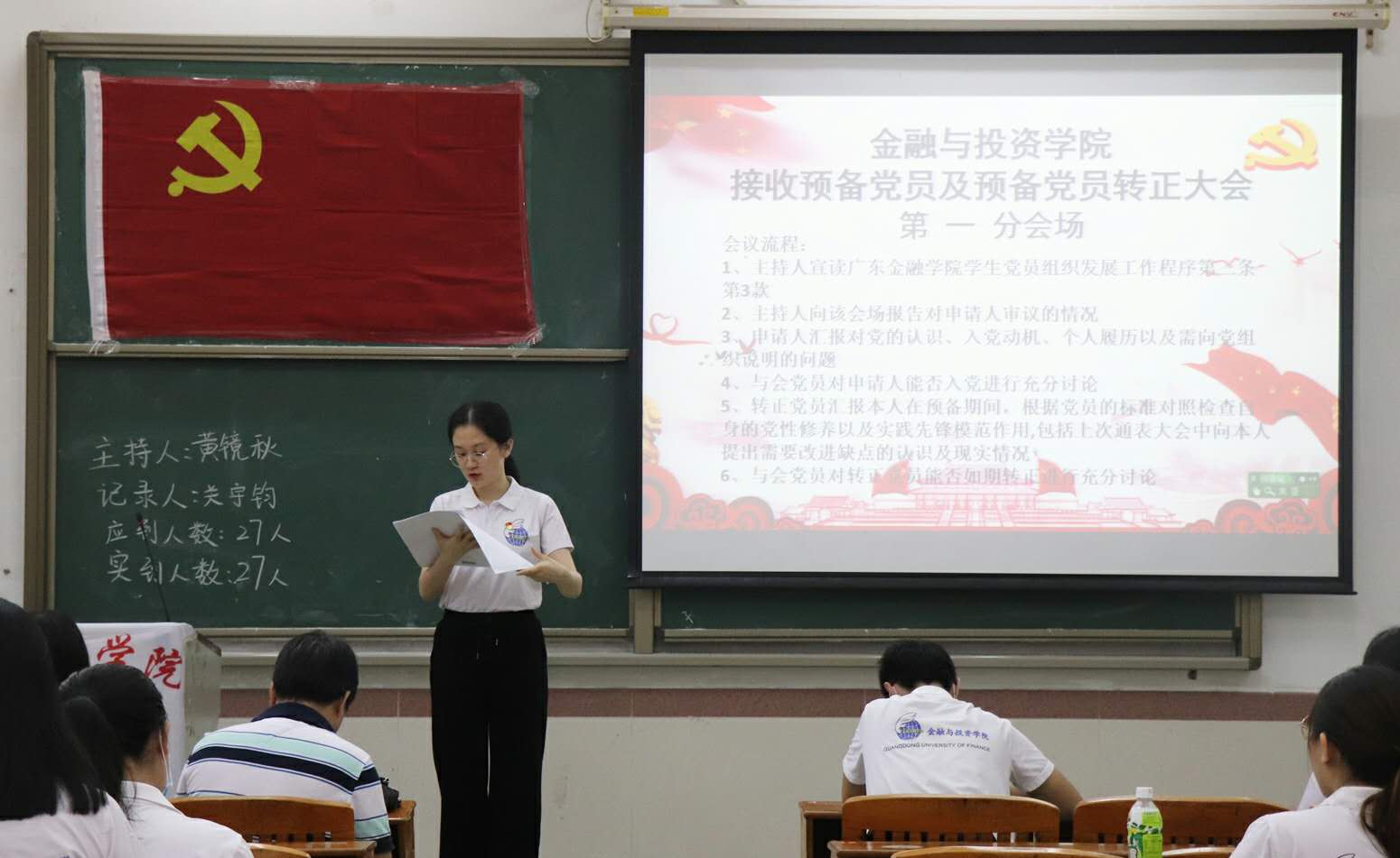主会场上,正式党员对通表、转正对象进行审议与不记名投票表决,并宣布接收48名通表对象为预备党员,48名预备党员如期转正。在会上,第一党支部书记黄镜秋老师代表党总支对48名新发展党员进行讲话,要求党员们增强政治意识,提升政治站位,坚决贯彻落实习近平总书记关于疫情防控工作重要指示批示精神和党中央决策部署,并认真研读防疫条例,配合公司做好防疫工作,号召党员们在打赢疫情防控阻击战上做好第一道防线,冲锋在前、勇挑重担,凝聚起疫情防控的中坚力量,树立起党员的先锋模范作用。