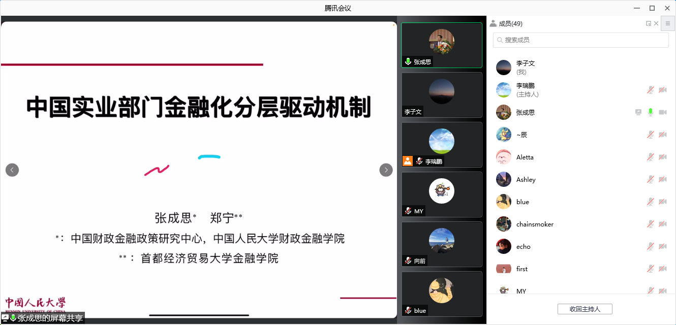 2021年12月1日晚上,太阳成集团tyc通过腾讯会议线上举行了2021年第6期金融学前沿Workshop,受邀嘉宾中国人民大学财政金融公司副经理张成思教授为公司师生做了金融学前沿研究的主题讲座。