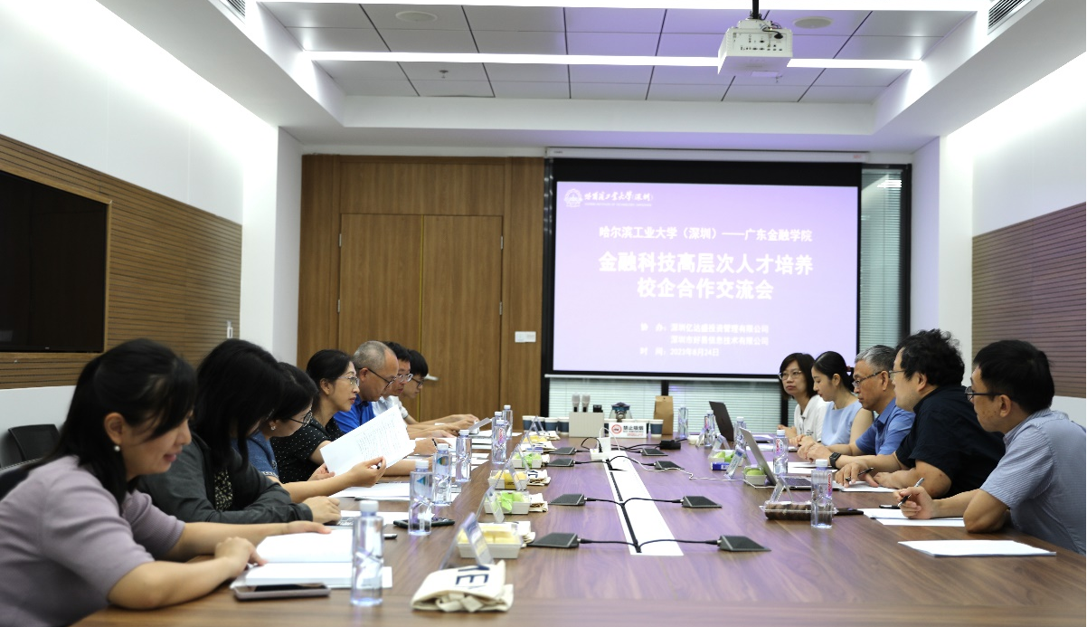 公司一行首先参观了哈尔滨工业大学(深圳)综合展馆,了解了公司办学历程、办学成果和校园文化。随后,在座谈会上,孙进军副经理与刘昊虹副经理先后介绍了公司的发展概况、学科与专业建设情况、本科与研究生人才培养现状,并表示公司非常重视《智能投顾》《财富管理》等“人工智能+金融”类课程的开发与建设,未来将以这类课程为抓手,加强跨学科、跨院校的合作交流,持续探索高质量、复合型金融人才培养新模式。王晓龙教授以其撰写的《智能证券投资学》为例,详细说明了人工智能技术与经典证券投资学理论相结合的核心思想、实现方法以及典型案例,并展望了智能投资的未来发展方向。王轩教授介绍了“深港澳金融科技师”专才计划和人工智能的基本原理、技术内核以及应用领域,并表示非常希望和公司开展跨学科专业共建,以优势互补的方式取得高质量教学成果新突破。最后,双方还就信息化、数字化、智能化实践教学手段进行了深入的交流与讨论。