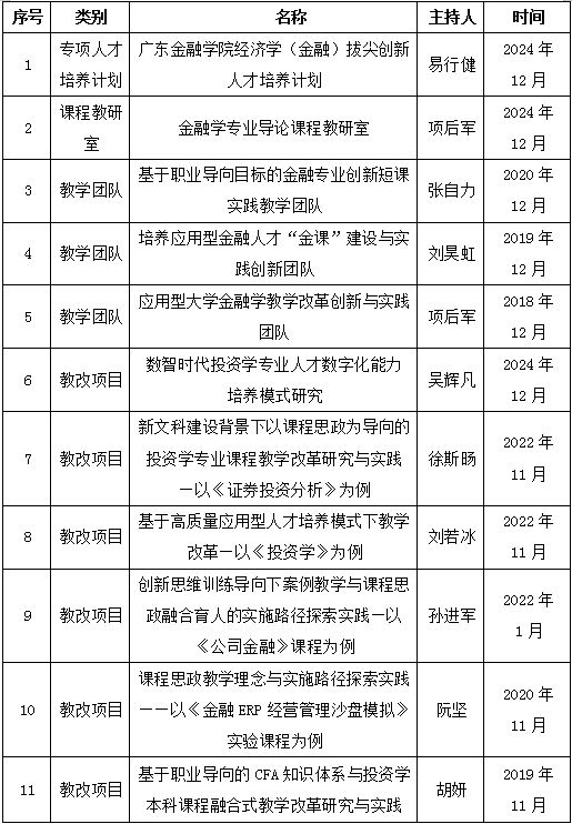 省级教学质量工程和教改项目