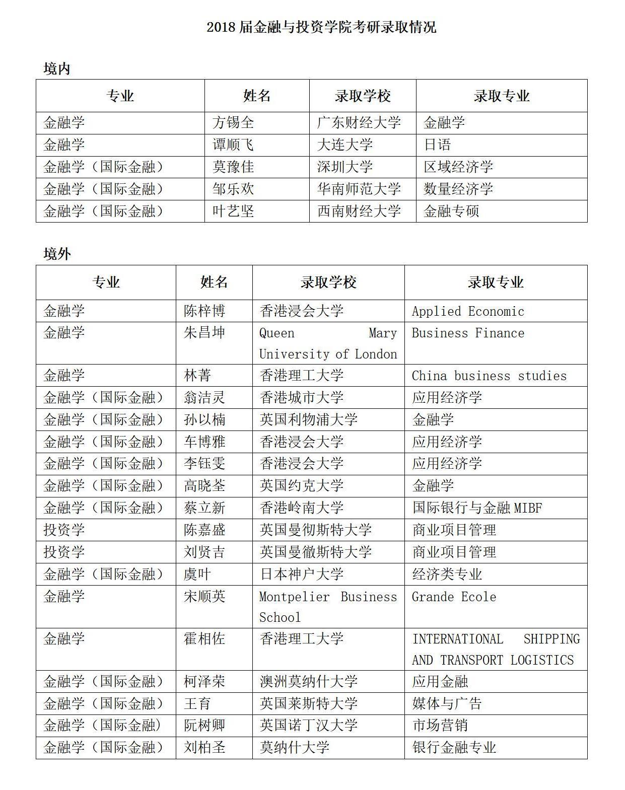 2018届太阳成集团tyc考研录取情况