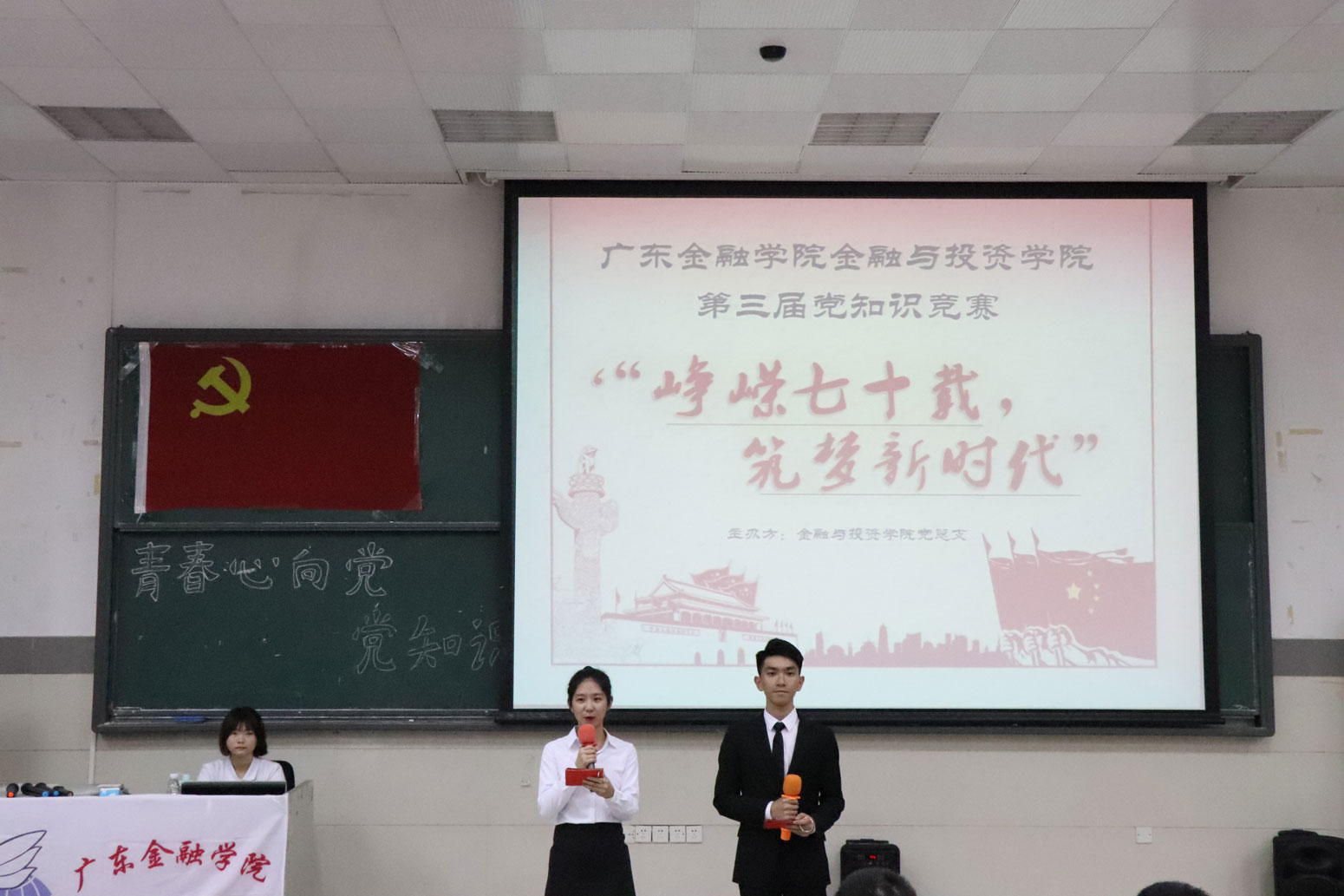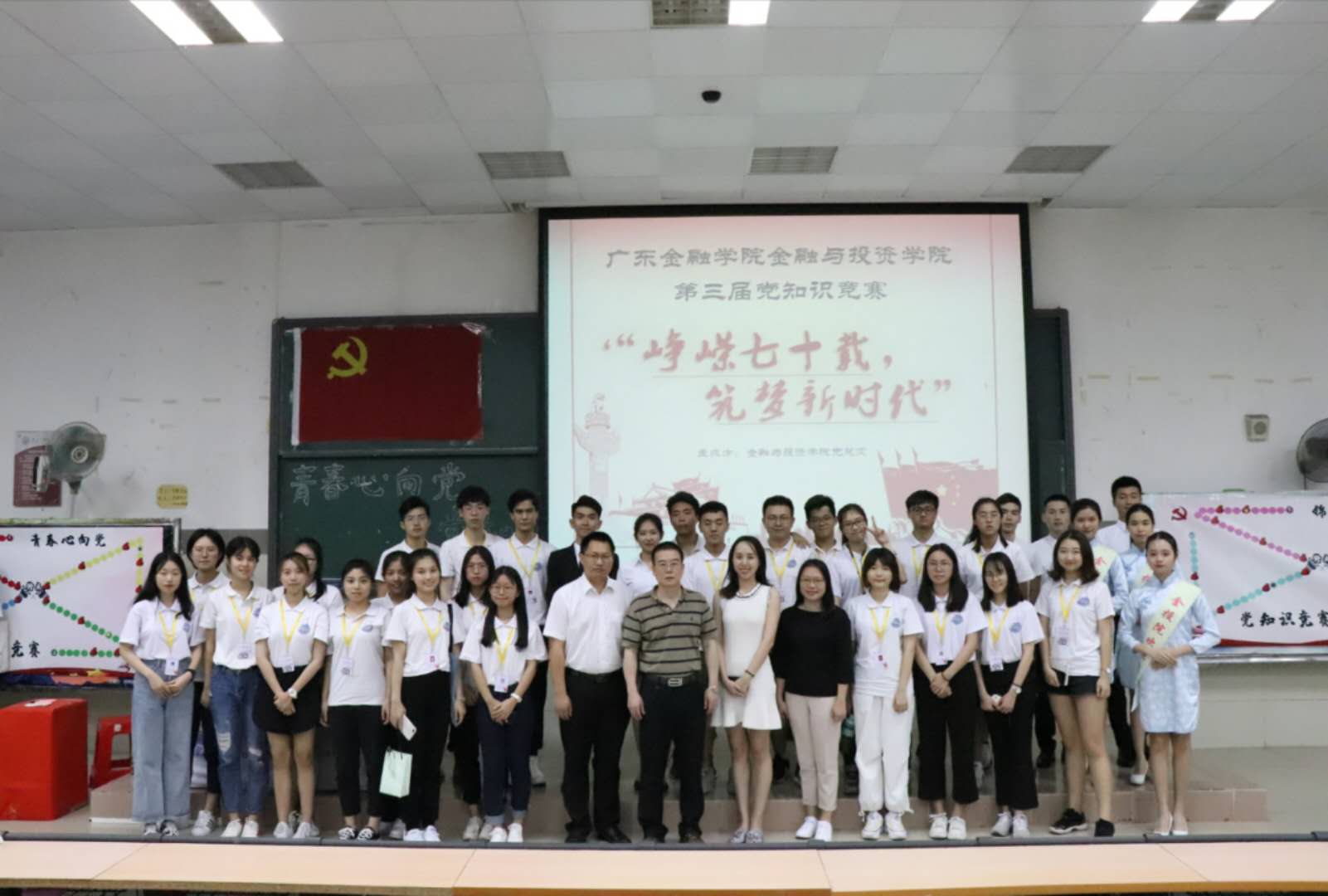 2019年4月24日,公司在北阶102举办第三届 “青春心向党”党知识竞赛活动。出席本次活动的领导老师有:公司党总支书记周少龙,第二员工党支部书记侯嵘老师,第三员工党支部书记车明珍老师,第四员工党支部书记刘海坤老师。在正式比赛之前,现场进行了各党支部与积极分子的风采展示。该环节各党支部以“峥嵘七十载,筑梦新时代”为主题,采用视频的形式展示各支部党员风采。