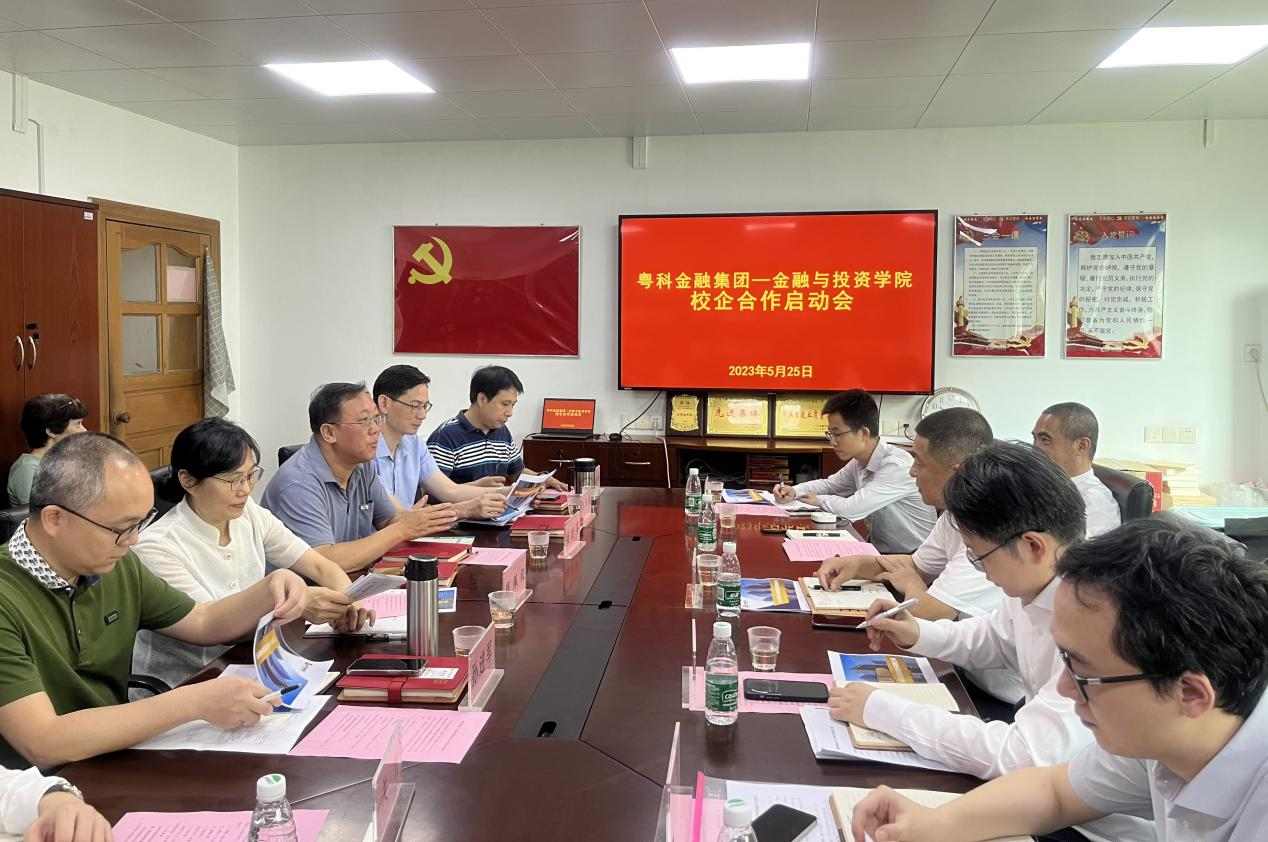为推进学习贯彻习近平新时代中国特色社会主义思想主题教育走深走实,深化产教融合、校企合作、赋能校区高质量发展,5月25日,粤科集团旗下粤普再贷公司刘卫东董事长一行走访太阳成集团tyc,共同座谈,开启校企战略合作。刘卫东董事长一行成员有,粤普再贷公司:副总经理朱志钊、董事会秘书曾晖、战略部总经理周德邦、业务部门负责人关竹、李薇菁。粤科集团:战略管理部副总经理伍文浩、党群人事部肖冬禹。太阳成集团tyc出席领导有党总支书记颜佩仪、经理项后军、副经理孙进军、副经理李日新、党总支副书记黄镜秋。