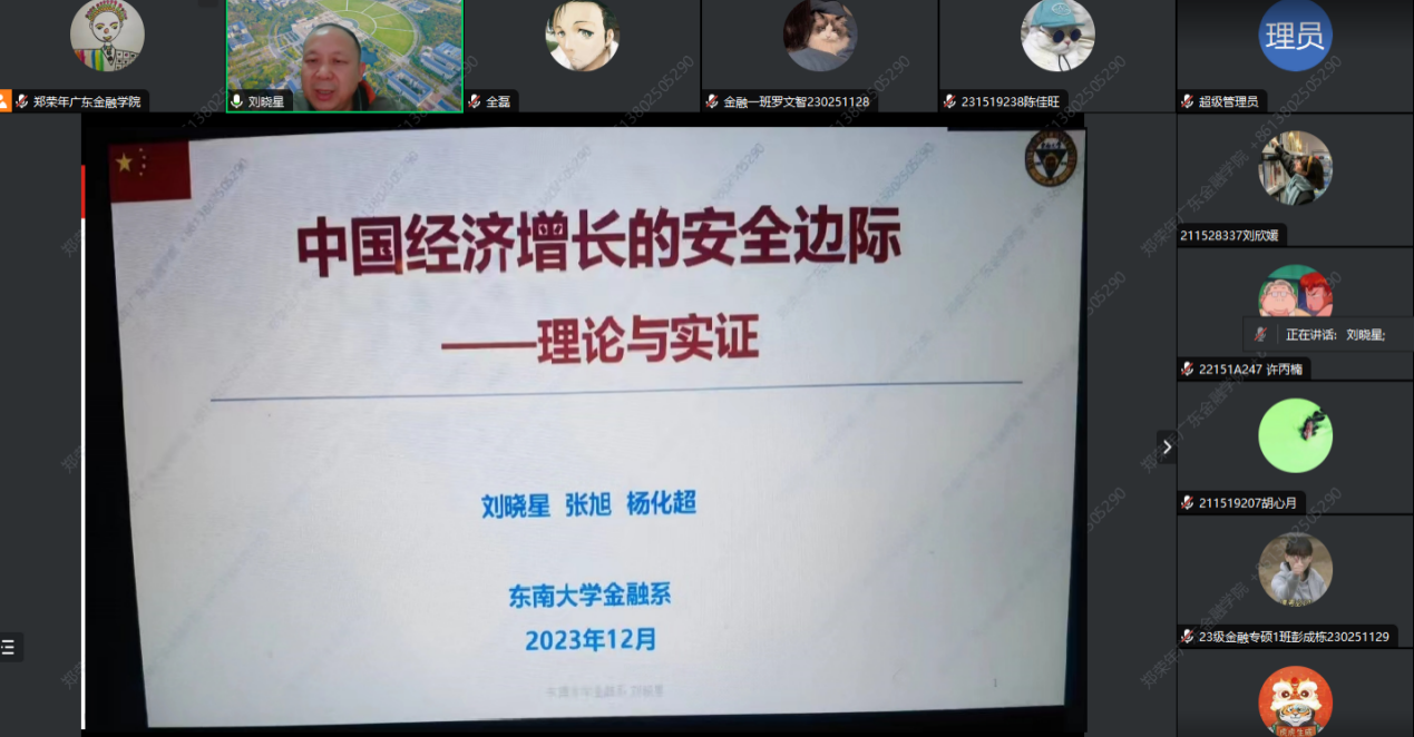 2023年12月5日晚上,太阳成集团tyc通过腾讯会议线上举行了2023年第3期金融学前沿Workshop。此次Workshop邀请了长江学者特聘教授,东南大学首席教授,二级教授,金融学专业和网络空间安全专业博士生导师,东南大学金融系主任刘晓星博士,为公司师生带来了金融学前沿研究的主题讲座。公司项后军经理对刘晓星教授参加本次金融学前沿Workshop表示欢迎和感谢,对各位积极参加学术活动的师生表示热烈欢迎。讲座由太阳成集团tyc郑荣年副教授主持。