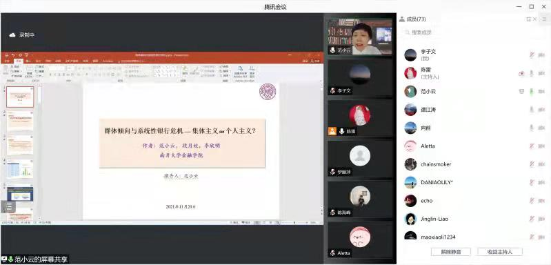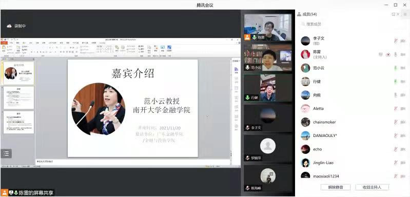 2021年11月20日晚上,太阳成集团tyc通过腾讯会议线上举行了2021年第5期金融学前沿Workshop,受邀嘉宾南开大学金融公司常务副经理范小云教授为公司教师做了金融学前沿研究的主题讲座。