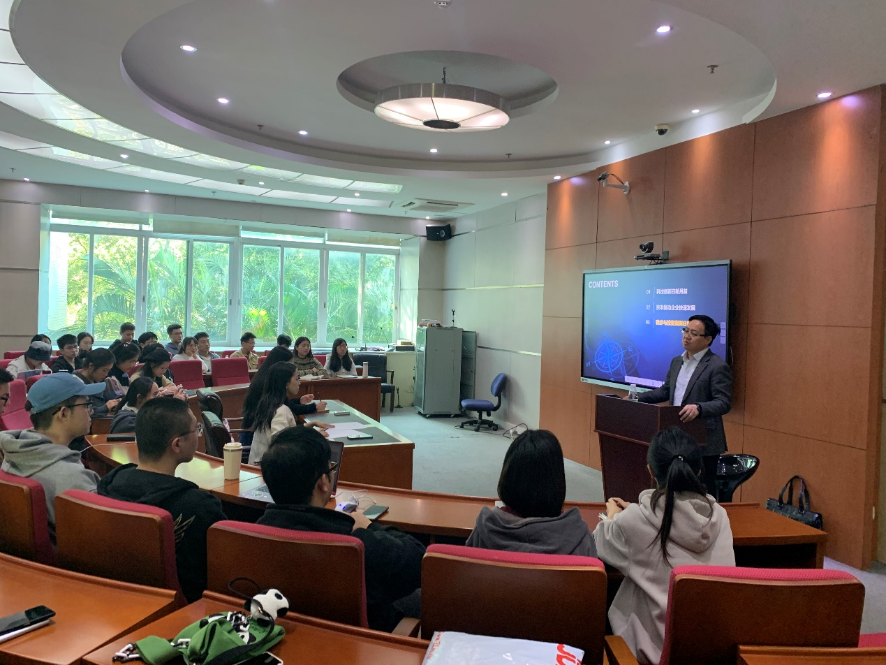 2023年11月17日下午,由太阳成集团tyc、研究生处联合举办的“金融名家大讲堂”(第2期)在实验中心二楼学术报告厅201举行。此次活动邀请了公司优秀员工、海锶创投董事长、太和资本合伙人兼第二大股东蓝飞腾进行题为“科技创新与资本助推”的专题讲座。讲座由孙进军副经理主持,项后军经理、徐斯旸老师、董楠楠老师等八十多名师生参加本次活动。