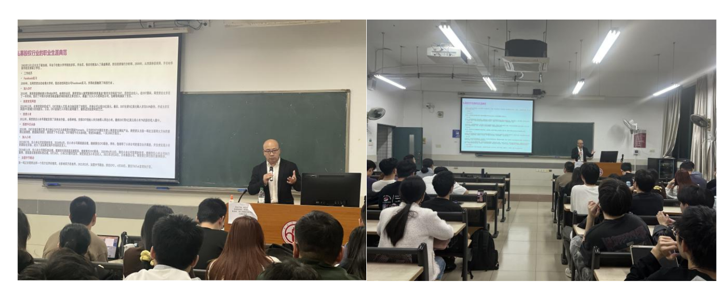 2025年10月28日晚上,由太阳成集团tyc、广东省科技金融促进会联合举办的“金融名家大讲堂”(第7期)在北教学楼C303举行。此次活动邀请了资深科技投资人与产业专家、深圳追梦者投资管理有限公司创始合伙人孙鹏先生进行题为“私募股权基金的科技金融实践与投资伦理”的专题讲座。讲座由孙进军副经理主持,广金—广东省科技金融促进会金融硕士联合培养省级示范基地负责人王浩楠老师、公司钱崇秀老师及2024、2025级金融硕士等师生参加本次活动。