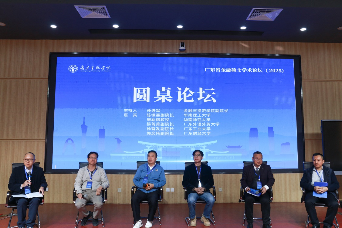 圆桌论坛以“金融硕士教育如何培育面向未来的高端金融人才”为主题,由孙进军副经理主持。华南理工大学陈镇喜副经理、华南师范大学屠新曙教授、广东外语外贸大学杨菁菁副经理、广东工业大学孙有发副经理和广东财经大学郭文伟副经理围绕金融硕士人才培养、课程体系建设、实践能力提升等议题展开热烈讨论。